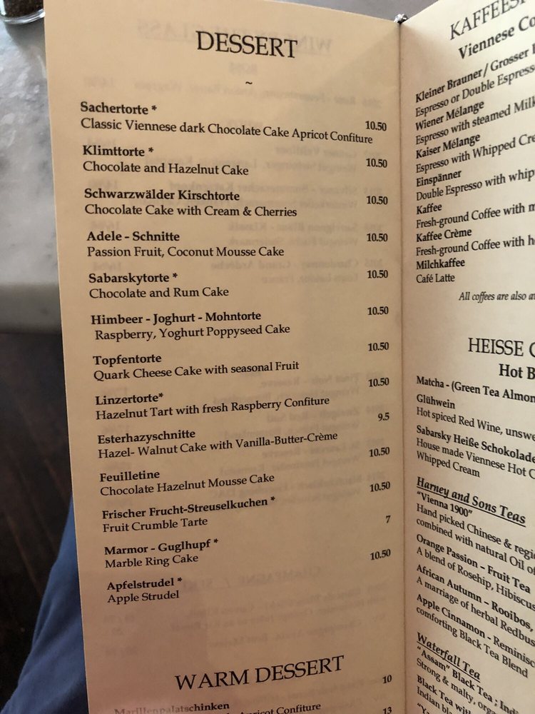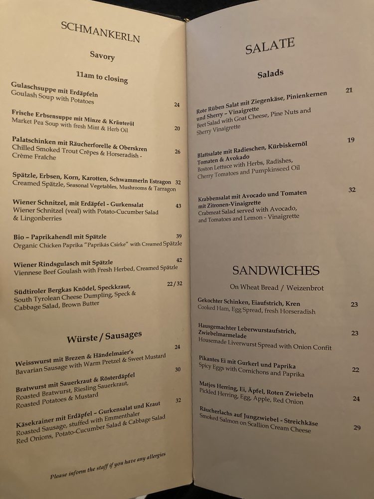 Cafe Sabarsky Menu